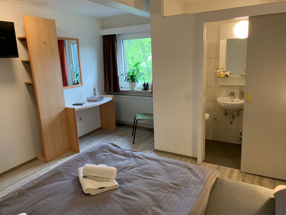 From our four cozy Klassik double rooms on the second floor you have a beautiful view all the way into the green Elbschevalley. Since the rooms are on the street side, we have equipped them with special soundproof windows. All classical rooms have a built-in bathroom with shower and toilet.